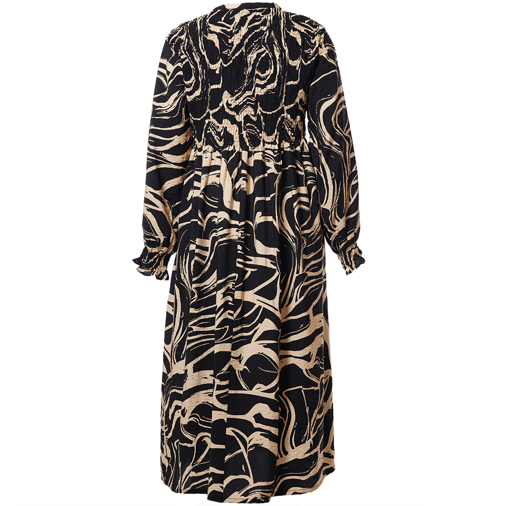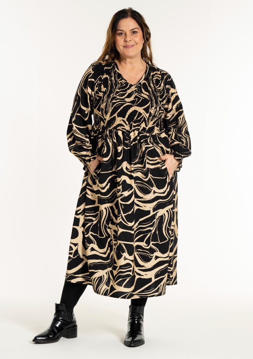 Pitkä viskoosimekko rypytetyllä yläosalla, hiekka-musta, Gozzip